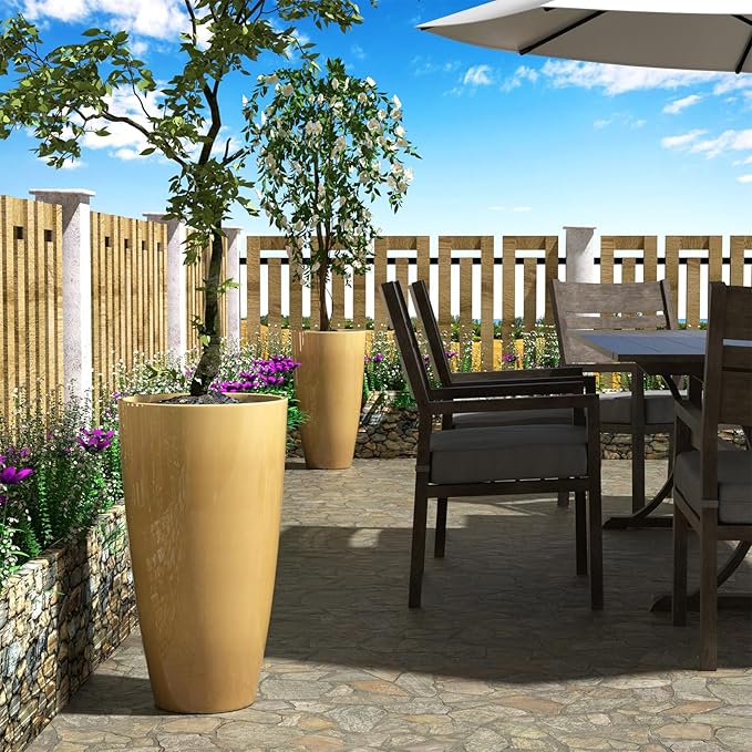 • DURABLE MATERIAL: Tall planter is made of plastic and stone composite, with beautiful texture and not heavy body. Thickened inner-wall makes it crack resistant, scratch resistant, UV resistant, colorfast all day long.