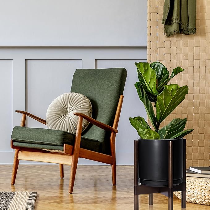 • A Complete Set: Mid-century ceramic planter, combined with a sculptural, solid wood stand that match perfectly together and looks great in anywhere.