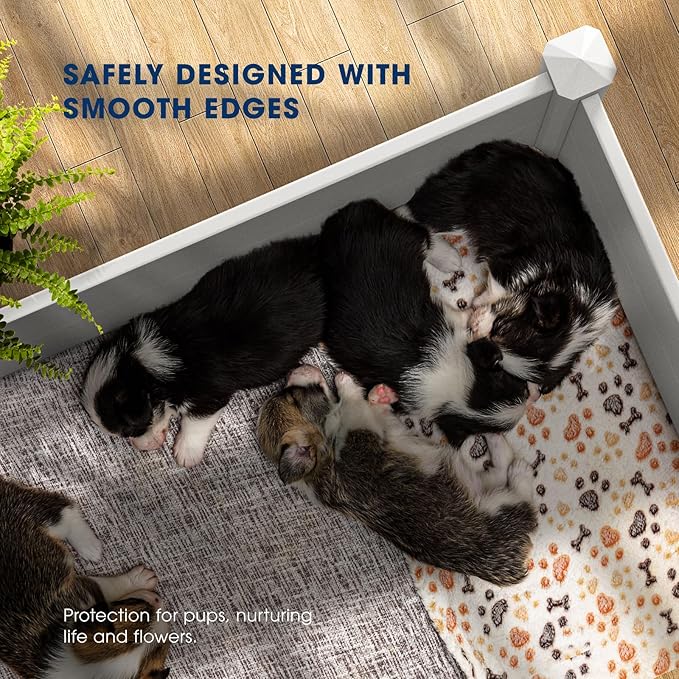 • VERSATILE USAGE: Whether you're growing vegetables, flowers, herbs, or even succulents, this raised bed provides the perfect conditions for your plants to thrive. It also works well as a safe space for puppies, kittens, rabbits, and other young animals, both indoors and outdoors. This garden box turns your outdoor area into a versatile space that can meet a variety of needs.