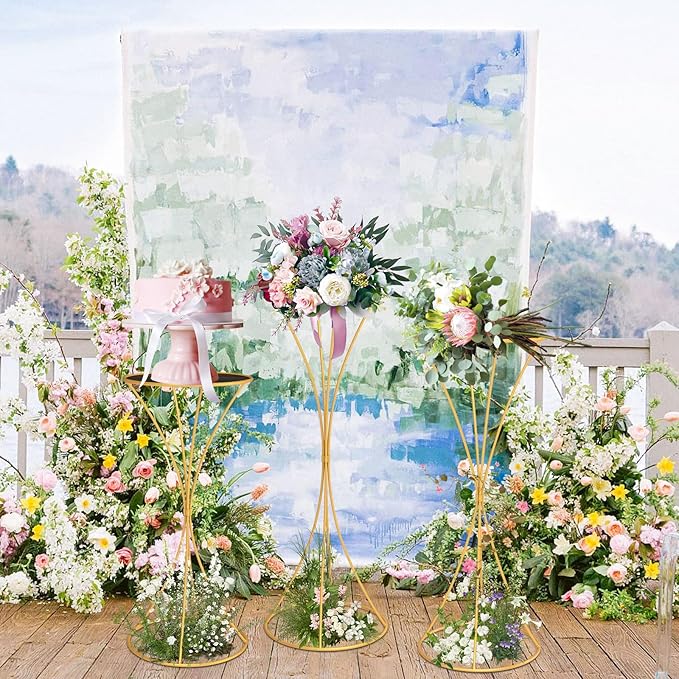 • PERFECT FOR MANY OCCASIONS - The gold metal plant stand set is elegant and luxurious, which makes it an ideal decoration for weddings, table centerpieces, road signs, birthday parties, anniversaries, and ceremonies. At the same time, it can also be used for decoration of daily occasions, such as living room, bedroom, fireplace, office, formal dining room, etc. You can also place different decorations on the vase stand according to different occasions or themes.