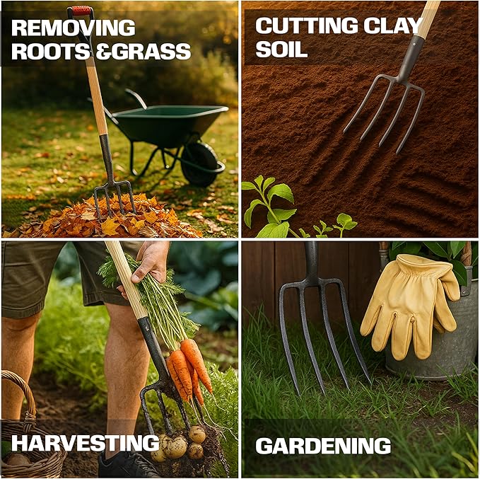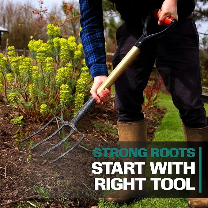 • LOW MAINTENANCE: Built to last with a rust-resistant finish, this gardening fork requires little upkeep—offering a hassle-free, long-term digging tool for everyday garden tasks.