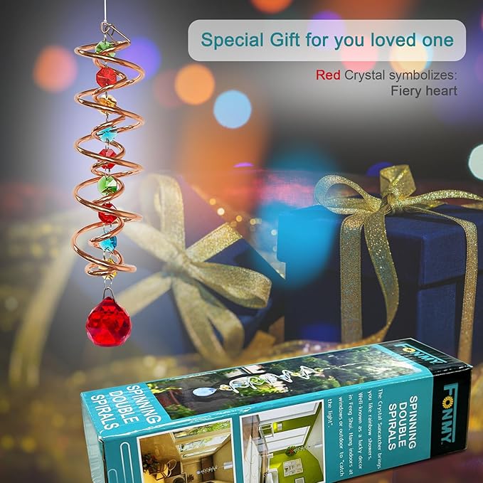 • 【HIGH QUALITY】:Made of stainless steel wire wilth golden color plating and crystal material, specail double structure spiral tail w/ solid red color K9 crystal glass ball and raibow color chain crystals , promised good weather resistant and amazing decoration. All FONMY crystal ball made of top crystal glass material with finely crafted, high clarity and cast beautiful rainbows, could turn the sun's rays into many rainbows.