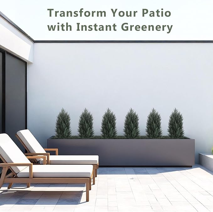 • 【LOW MAINTENANCE & HASSLE-FREE】Skip the watering, trimming, and shedding. These outdoor faux plants are designed for lasting curb appeal—perfect for homeowners seeking a mess-free, effortless greenery upgrade. Just place them in your porch planter, backyard corner, or indoor office space.