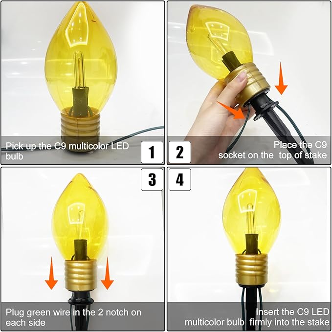 • 🔥 Easy to installation: Outdoor C9 jumbo christmas pathway lights easy to installation, Christmas garden driveway christmas lights plug in and use it, walkway christmas lights outdoor perfer for Thanksgiving, Christmas, pathways, driveways, garden, patio, balcony, porch, hallway, fence lighting and decorations. Outdoor christmas yard stakes lights can also be used for other celebrations and events throughout the year
