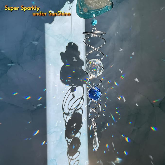 • 【PREMIUM CRYSTAL SUNCATCHER】The spiral with crystal is a special sun catcher rainbow maker, it’s Super Sparkly under sunshine. You can also add a motor(not include) to let the spiral to spin ,while spiral tail rotating (it can’t spin by itself.), the crystal ball seems to move up and down like floating and dancing in air, presents the magical visual illusion.