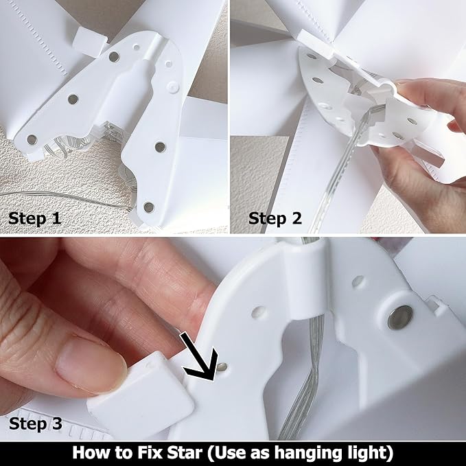 • Dual-Purpose Use: The hanging ornament hanging star lights comes with with hooks to hang from your porch, patio, yard, or roof to make it sparkle at night, you can also use it as a Christmas tree topper, glowing brightly atop the tree to let your Christmas tree work its magic. Also equipped with ground insert tools, you can decorate your garden backyards paths walkways. Welcome Christmas with this lighted Christmas tree topper!