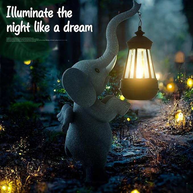 • 【Good Luck Angel Elephant Outdoor Decor】Put the solar angel Elephant garden statues on your garden or yard,it symbolizes good luck.The Outdoor statues has realistic shapes, fine workmanship and natural colors and textures, which make the 3-dimensional works come alive,add vitality to the silent lawn and garden.
