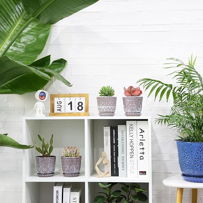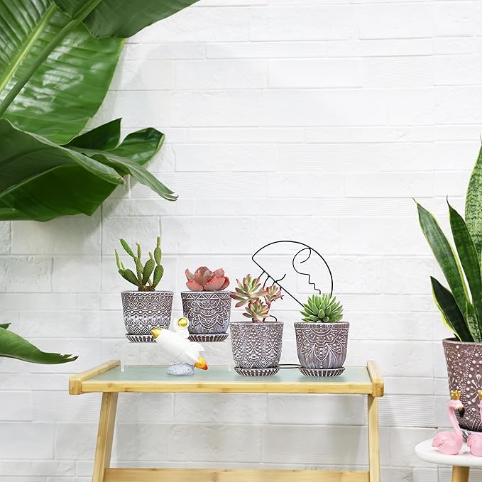 • Size & Package: 4.0 Inch Pot - Set of 4. Package: contains 4 ceramic flower pots, 4pcs mesh pads and 4pcs saucers(NOT INCLUDE PLANTS)