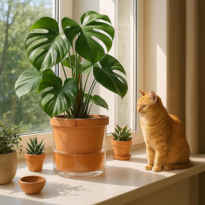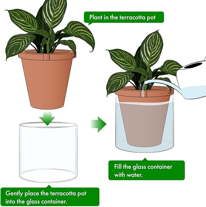 • Stylish Design with Perfect Combination – Newly designed self-watering pot with magical combination of terracotta succulent pot with a glass reservoir. Functional, attractive and stylish plant pot set.