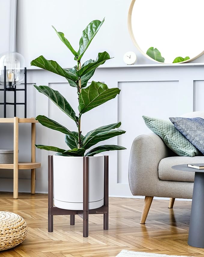 • A Complete Set: Mid-century ceramic planter, combined with a sculptural, solid wood stand that match perfectly together and looks great in anywhere.