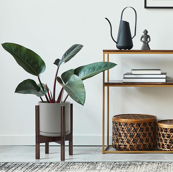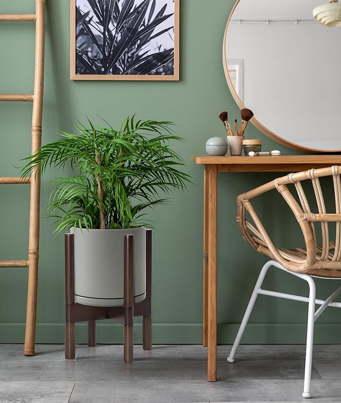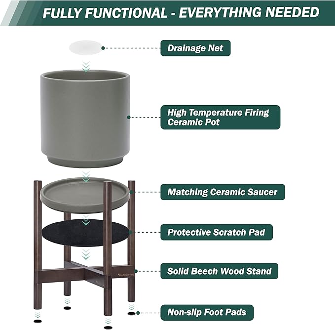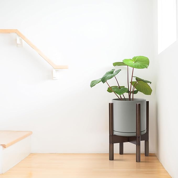 • A Complete Set: Mid-century ceramic planter, combined with a sculptural, solid wood stand that match perfectly together and looks great in anywhere.