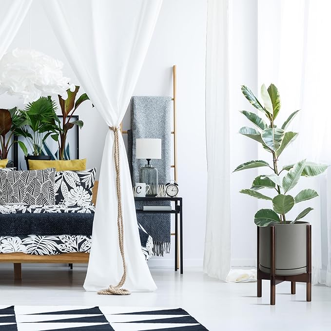 • A Complete Set: Mid-century ceramic planter, combined with a sculptural, solid wood stand that match perfectly together and looks great in anywhere.