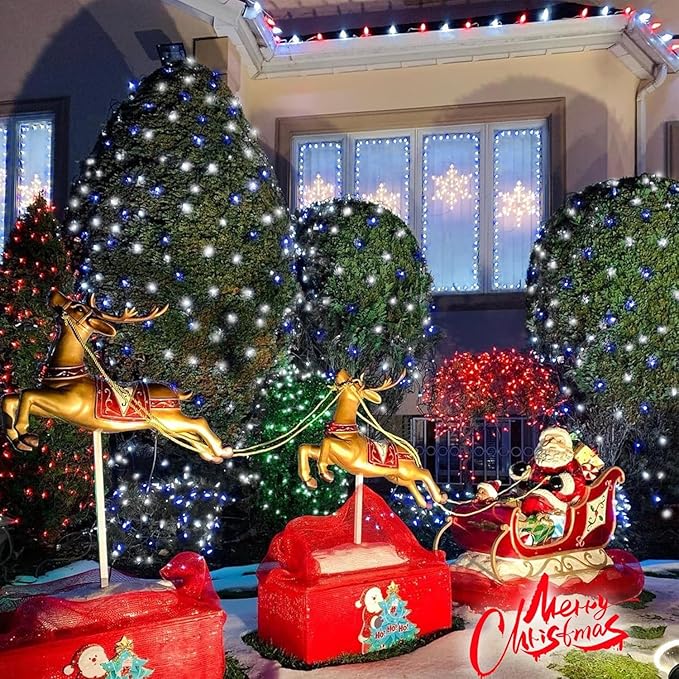 • 8 Lighting Modes Solar Christmas Lights: Blue&White solar christmas lights outdoor are 8 different settings on the back of the solar panel to creates a dreamy feeling and your garden looks like a enchant fairy land at night. Blue&White christmas lights are an amazing addition to your yard, create a pleasant mood for events, parties or weddings