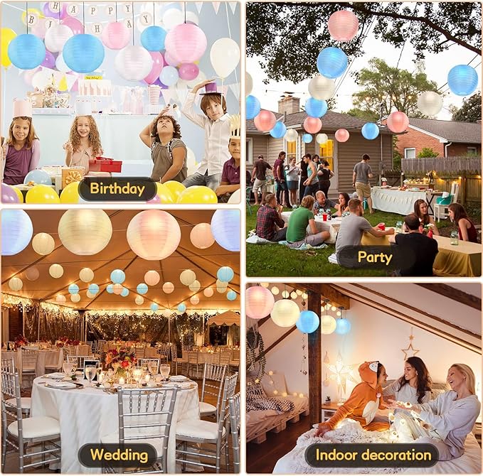 • Perfect Decoration for Any Event: Add decorative Hanging Colorful Lanterns, your family and friends feel more joy and cheerful ambiance of the weddings, birthdays and other celebration. Also perfect for outdoor decoration, like courtyard, summer garden party and other theme party.