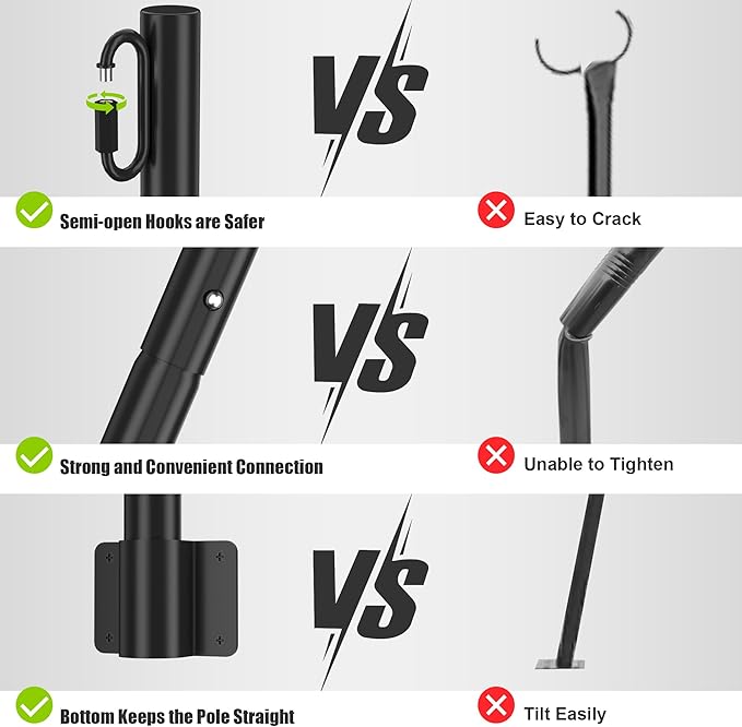 • Solid Base Design: Base is welded and wrapped between the rod and the bottom to improve stability, will not fall off, and makes installation more convenient. If you want to reposition, simply remove the fixing screws and reposition. You can complete the installation independently without any help; It's very simple. No ground space is occupied during use. Does not affect the original backyard or deck design, efficient use of space, due to small size, can be quickly disassembled and stored.