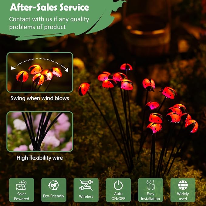 • Swaying in the Wind:The reinforced steel wire is extremely tough and flexible, which makes it easy to arrange the shape while also being able to easily sway with the wind, and the Ladybug become vivid and more ornamental
