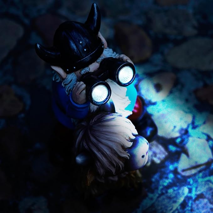 • 【Cute Gnome Decor】Add your outdoor yard the warm mysterious atmosphere at night with this adorable garden gnome and highland cow. Fully charged under the sun for 6-8 hours, will glow for about 8 hours. Size: 6.8" x 5.5" x 9"