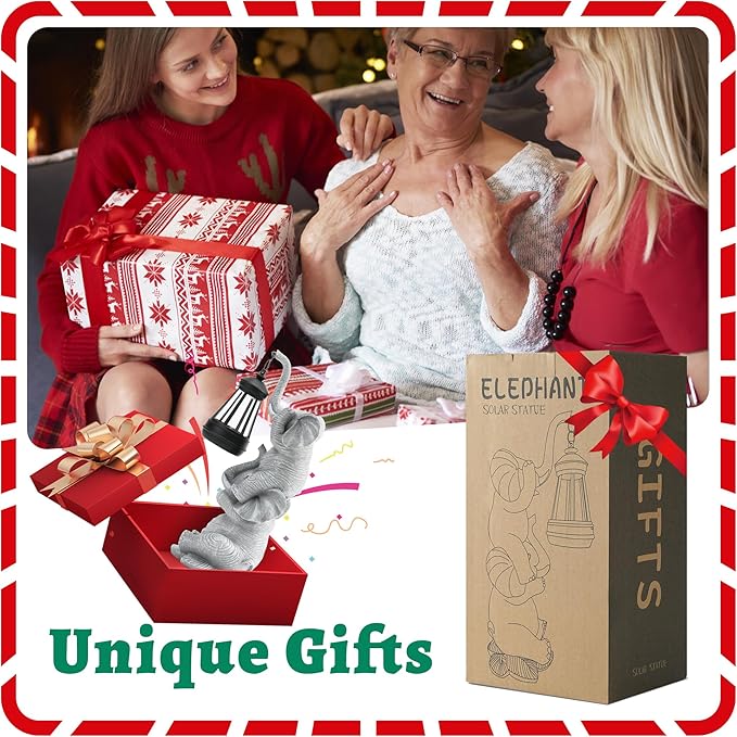 Solar Elephant Garden Statue with LED Lights - Waterproof Outdoor Decor for Patio, Yard, Balcony - Unique Elephant Gifts for Women, Mom, Grandma - Birthday, Mother’s Day, Housewarming Gift