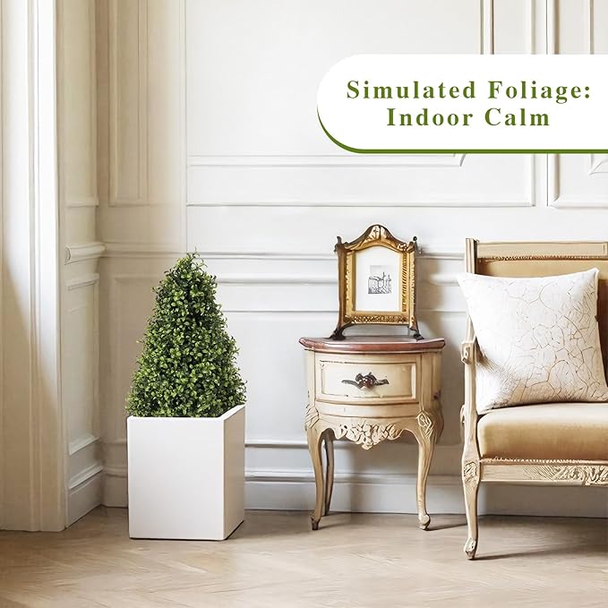 • Lifelike & Elegant Design - Crafted with dense, realistic foliage and a natural cone shape, these artificial boxwood plants bring a sophisticated, lifelike touch to your outdoor or indoor space. Each faux tree stands 2.5ft tall and is the perfect height to frame doorways or walkways