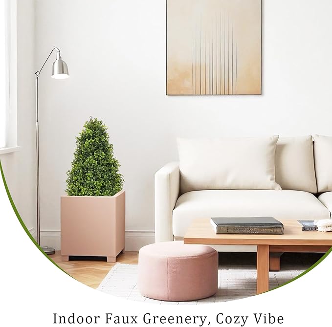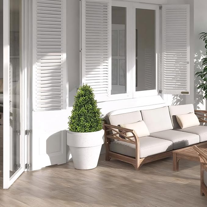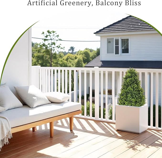• Durable & Weatherproof - Crafted with UV-resistant plastic leaves and a sturdy cement base, this topiary trees artificial outdoor decor withstands sun, wind, and rain. A long-lasting boxwood topiary ideal for year-round display outside or inside