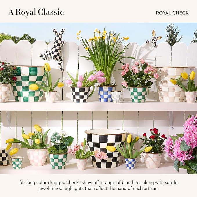 • ELEGANT PLANTER DECOR: This small plant pot features our hand-painted Royal Check pattern with blue-and-white checks in a range of blue hues that will add something regal to any decorative theme. Use it to create an indoor garden or an outdoor pot centerpiece on your patio table.