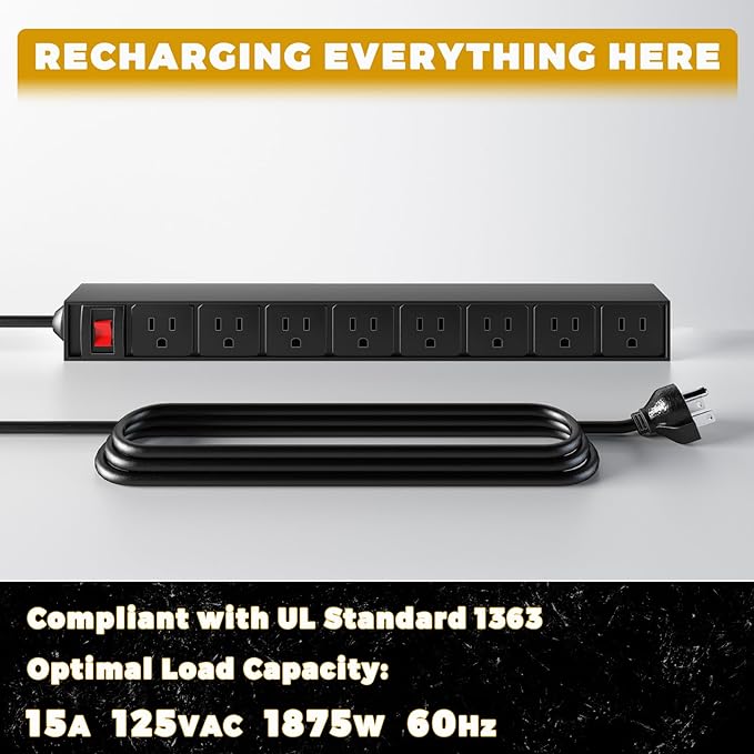 • Efficient Storage: The KAFAHOM Electric Tool Rack is designed with three tiers and eight dedicated slots to efficiently store your electric tools. The top tier features a built-in charging station, enabling direct charging while tools are stored.The power cord is 7 FT long 14AWG,and the charging station is 15A 125VAC 1875W 60Hz.