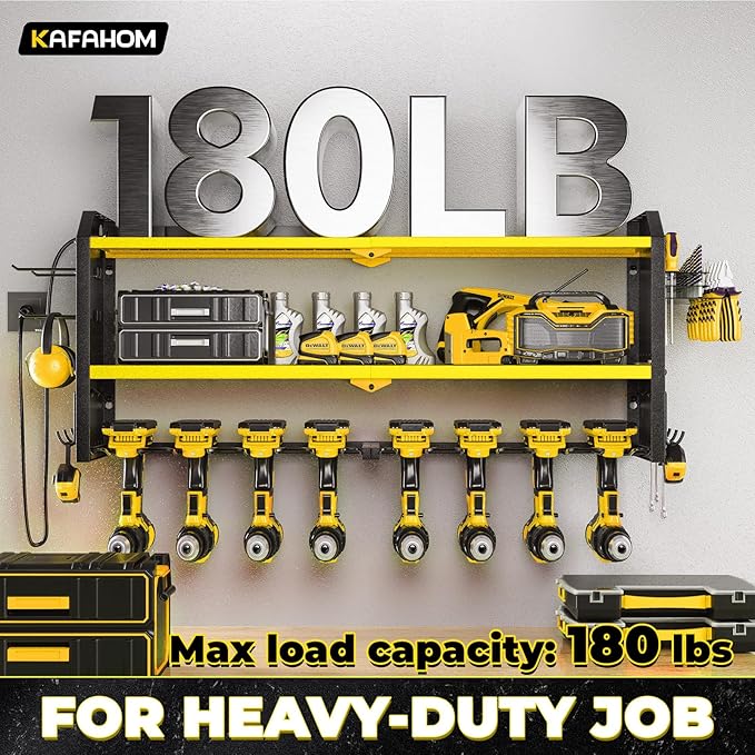 • Robust Construction: Built to last, KAFAHOM tool box organizers and storage wall mount features a sturdy alloy frame and reinforced double-layered metal plates for exceptional load-bearing capacity. It's the ideal utility cordless drill holder for a wide range of tools and accessories.