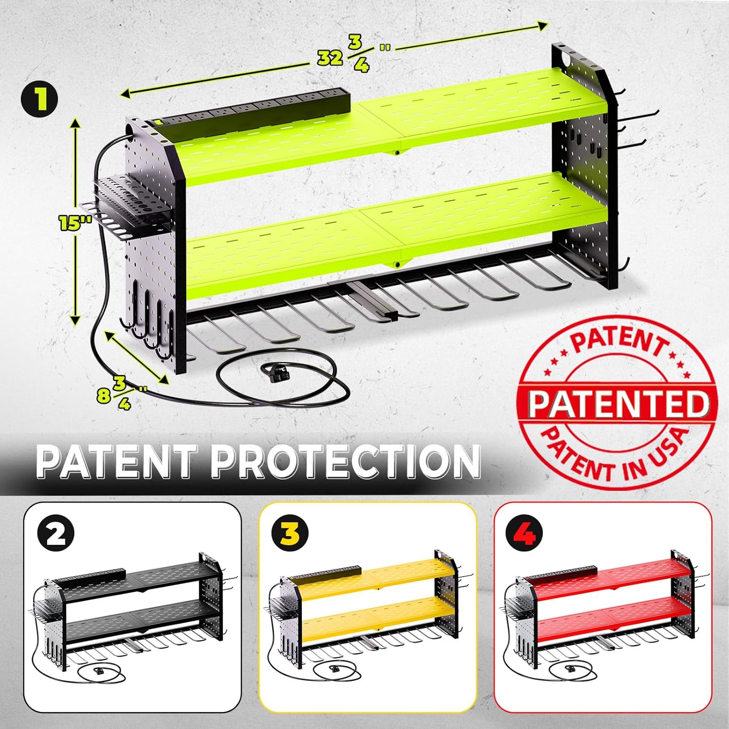 • Efficient Storage: The KAFAHOM Electric Tool Rack is designed with three tiers and eight dedicated slots to efficiently store your electric tools. The top tier features a built-in charging station, enabling direct charging while tools are stored.The power cord is 7 FT long 14AWG,and the charging station is 15A 125VAC 1875W 60Hz.