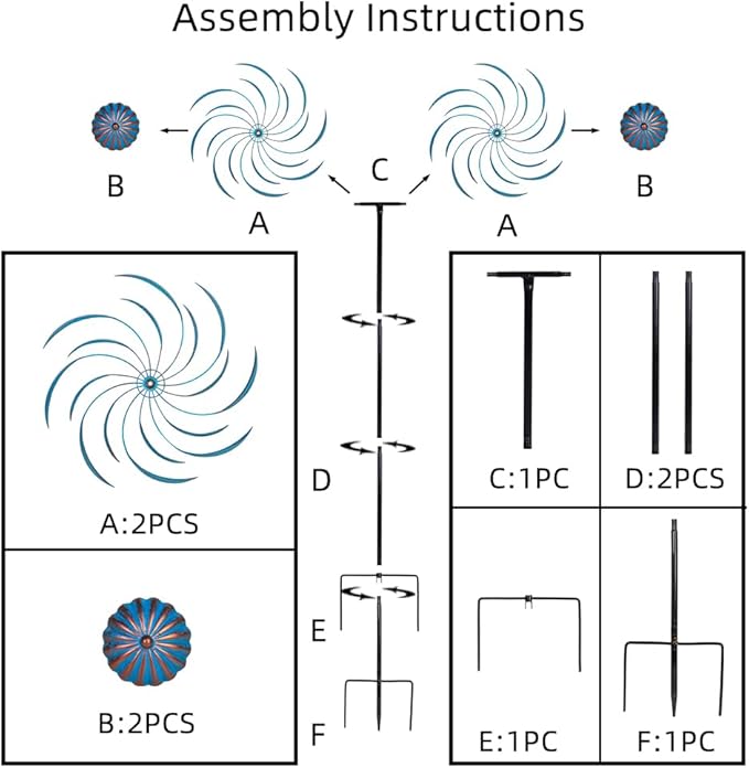 • Easy to Assemble:This wind sculptures is easy to assemble with the instructions and no additional tools.Note please install the pole then install the windmill blades ,which is easier to assemble