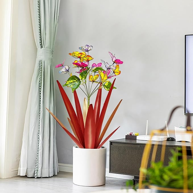 Garden Outdoor Butterfly Enlarge Thickened Wind Resistant Metal Agave Garden Art Metal Plant Country Sculpture Statue Decorations Ornaments Artificial Waterproof Butterflies(red 2pcs)