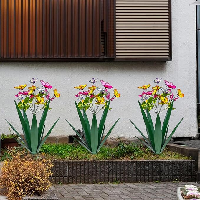Garden Outdoor Butterfly Enlarge Thickened Wind Resistant Metal Agave Garden Art Metal Plant Country Sculpture Statue Decorations Ornaments Artificial Waterproof Butterflies(Green 3pcs)