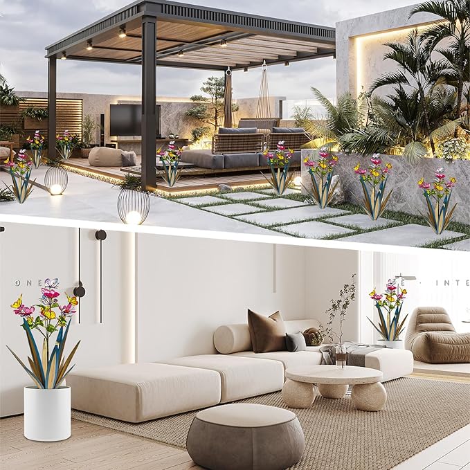 • [Cute design garden peg decoration] : Wings can be opened or closed for various displays. The thin metal stakes are easy to hide, creating the illusion of a real butterfly. Their vibrant colors and lifelike appearance will transform your garden into a beautiful and charming oasis.