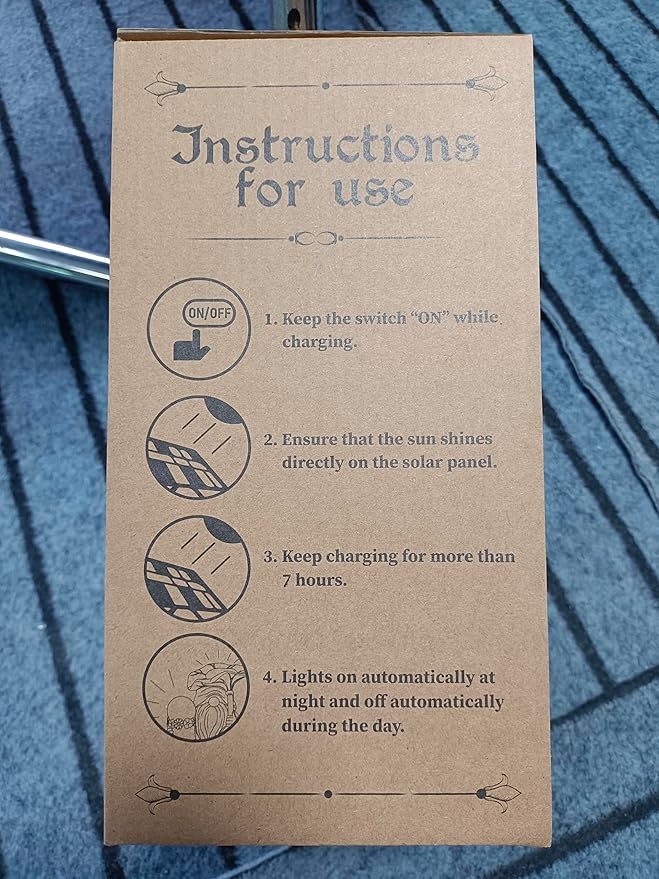 • Solar Powered: Solar garden statue has no installation required and with built-in rechargeable battery. Simply place the solar figurine in direct sunlight and leave the switch in the "ON" position. The garden gnome light will automatically light up at night for over 8 hours after 6-8 hours of charging during the day