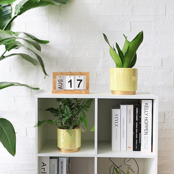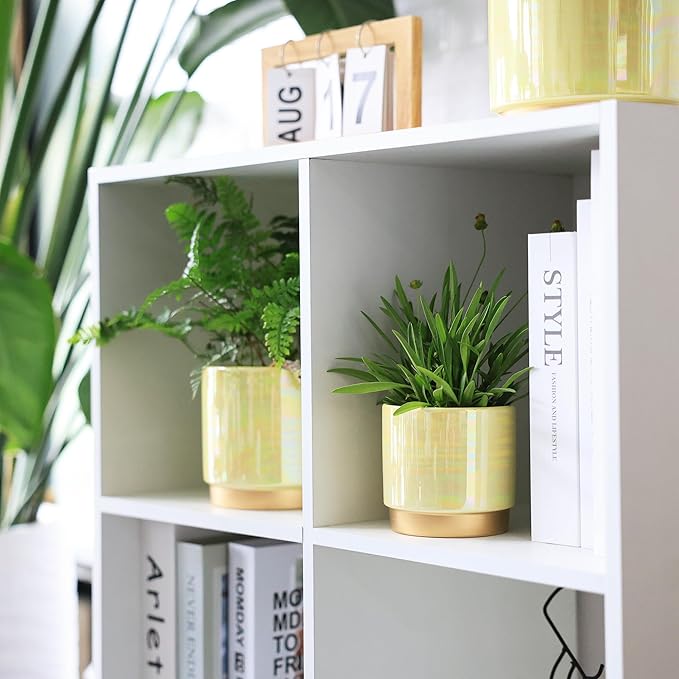• Rainbow Pearlescent Glazed Design With Drain Holes: The rich color of this ceramic flower pot is covered a rainbowl look. Deep planting space promotes root growth to keep plants healthy. Large drain holes are good for draining, it is suitable for orchids, succulents, cacti, other flowers and green plants, perfect for home decoration.