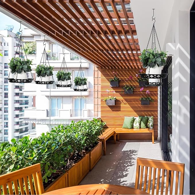 • Easy Installation: the package includes 3 x metal baskets, 3 x 4 in 1 hanging chains with hooks; This plant hanger set is easy to use, just simply attach the chain to the edge of the basket, you can easily hang the planters on the ceiling, window or wall