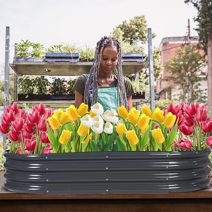 • Built to Last: Our raised garden beds outdoor are made of 0.8mm galvanized metal sheet, double-layer anti-corrosion galvanizing and oval structure design. Compared with the ordinary rectangular elevated garden bed with a thickness of 0.3mm, it will be the right choice for you.