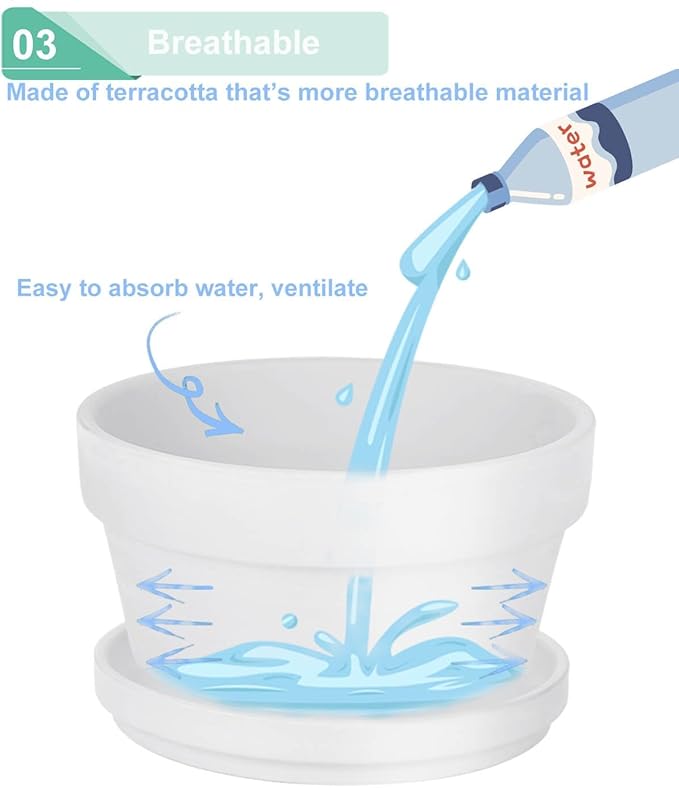 • Saucer&Drainage: Package included 6pcs terra cotta saucer to prevent dust and water from falling out of the drain, to keep the interior clean and to increase the beauty of the room the drainage outlet can prevent water accumulation and extend the life of the plant.