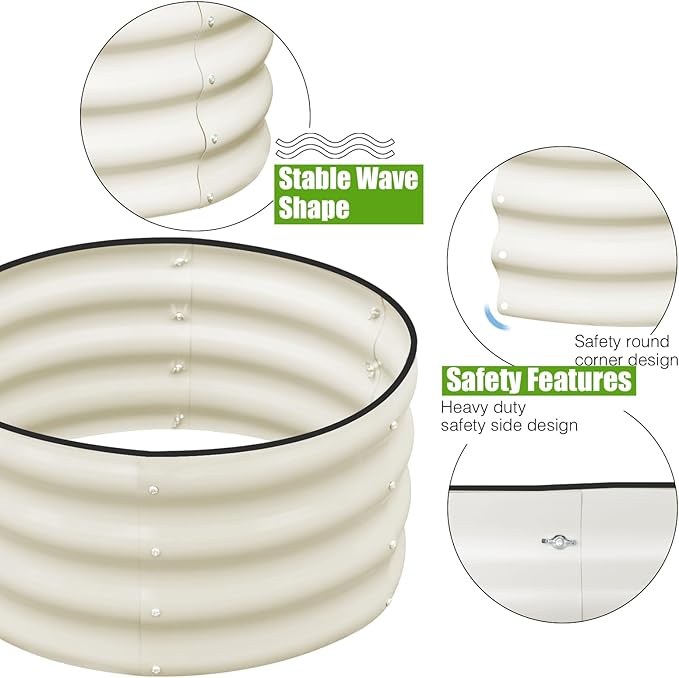 • DURABLE MATERAL: Made of thick galvanized steel plate, wave structure and round shape, rust-proof and durable, can stay in contact with the soil for a long time and resist corrosion.