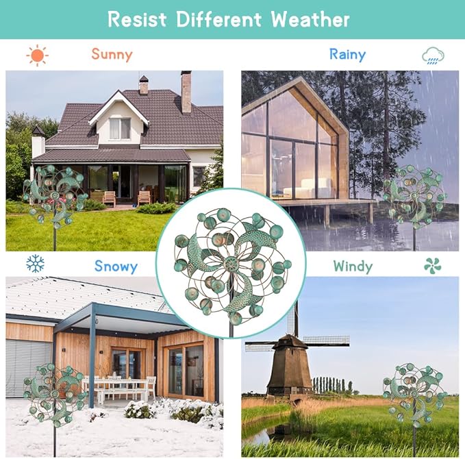 • Versatile Occasion: Whether enhancing garden decor for a party or creating visual interest in your yard, these wind spinners outdoor adapt to every mood and season. They're perfect for enhancing garden parties, creating a focal point in your yard art, or simply bringing joy to daily life.