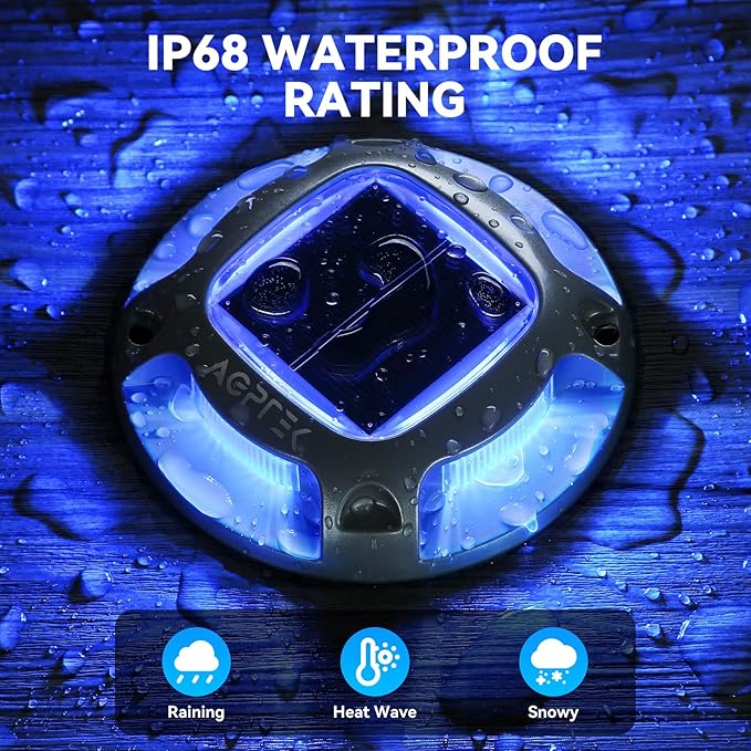 • 【Heavy Duty Solar Lights】Made of Premium Aluminum Material, able to withstand 3 tons of pressure from vehicle, trucks and boats. No need to worry about these marine dock lights being damaged due to crush or hits while located on driveway or outside boat dock.