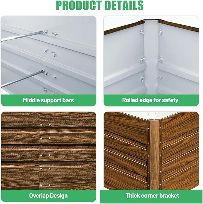 • EASY ASSEMBLY: Our garden box with assembly manual and tools allow you to easily assemble within a short time. The planter raised beds with safe rolled edge to prevent injury.Note: Peel off the outer protective film before assembly.