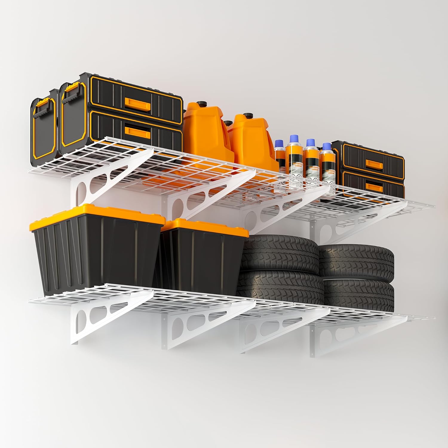 • Multi-functional Garage Wall Shelving: Made of durable, heavy-duty cold-rolled steel, this 2x6 ft garage shelf offers plenty of storage space for your garage, small pantry, or kitchen.