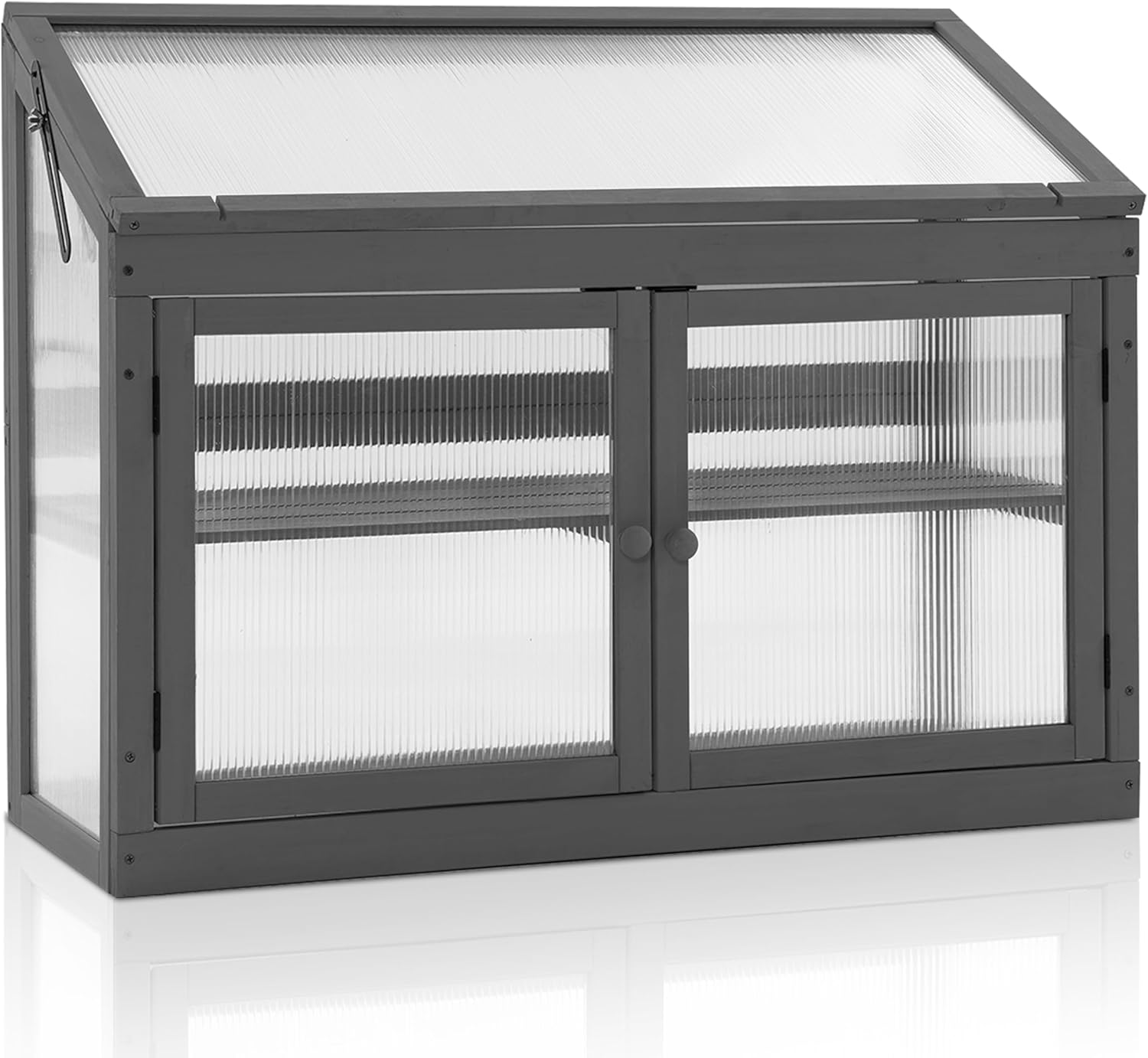 MCombo 2-Tier Wooden Cold Frame Garden Greenhouse Raised Flower Planter Shelf Bed Protection 6057-0160 (Dark Grey)