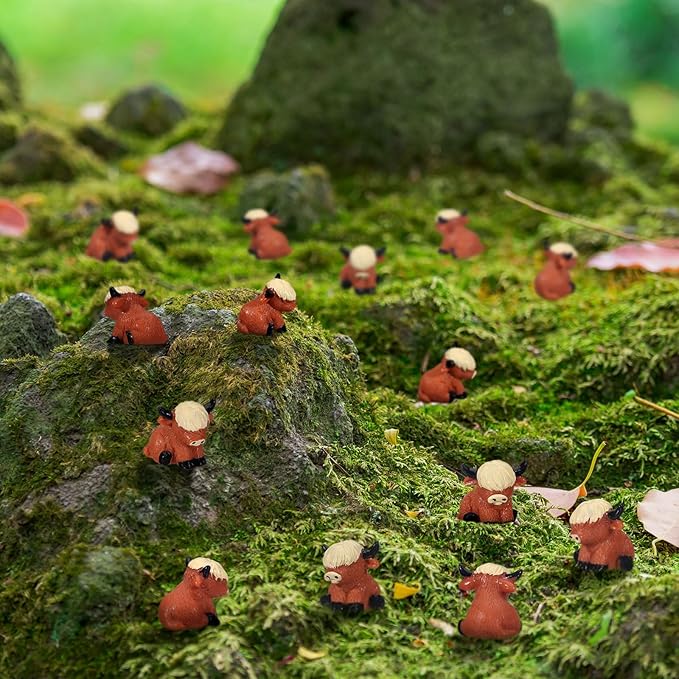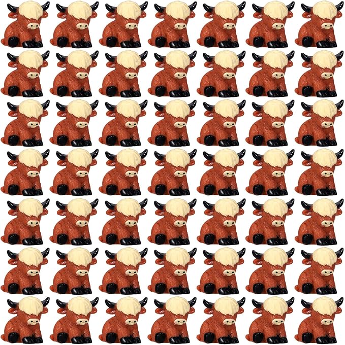 • Quality Material and Generous Quantity: crafted from resin, the highland cow decor is cute and waterproof, ensuring safe usage without worry of them fading or wearing out; The pack includes 50 miniature highland cow statues, providing plenty for all your decorative needs or even for gifting to your loved ones