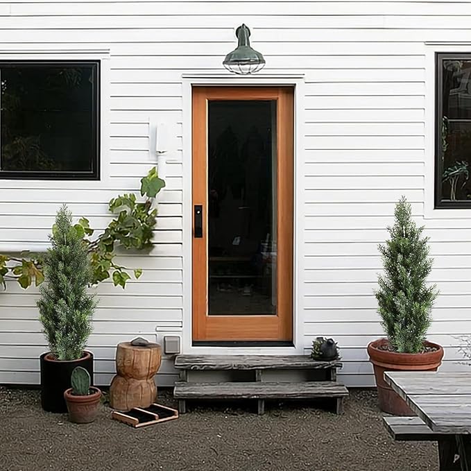 • Realistic Looking:This artificial cedar plant is covered with lifelike cypress crafted from plastic. which make you get close to nature. And it doesn't have weird plastic smell. Due to slight compression deformation during packaging and transportation, please gently adjust the product shape by hand upon receipt.