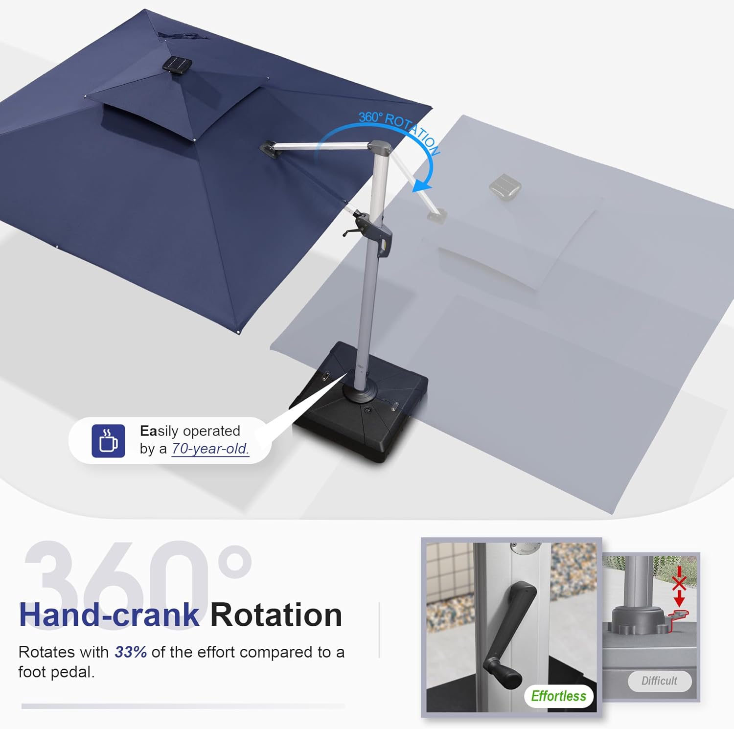 PURPLE LEAF 10' X 13' Double Top Deluxe Solar Powered LED Rectangle Patio Umbrella Offset Hanging Umbrella Outdoor Cantilever Umbrella, Navy Blue