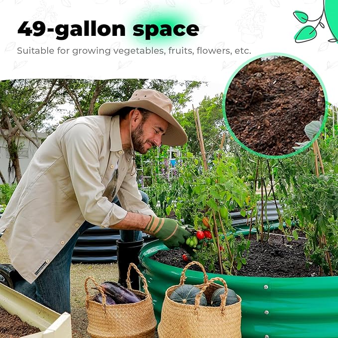 • 【Extra Large Planting Space】The raised garden beds outdoor measure 48"(L) x 24"(W) x 12"(H) and hold 49 gallons of soil, making it perfect for growing vegetables, fruits, flowers, and other plants.