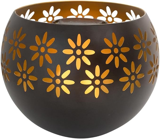 • 8” Metal Decorative Bowl - The Solar Fire Bowl features a stylish metal design, adding a touch of sophistication to your outdoor garden decor while serving as a functional solar table lamp, lantern and garden decor.