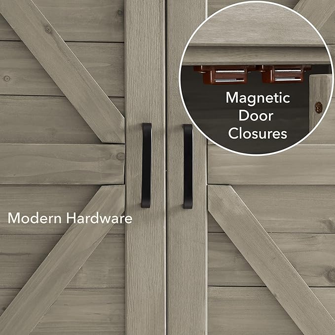 • Durable construction: The wooden garden potting storage cabinet is made from cedar wood. The galvanized metal steel top adds durability and protection against the elements, with resistance to rust and corrosion making it particularly suited for outdoor use. Magnetic door closures and ergonomic door handles provide for easy opening and closing of the cabinet doors.