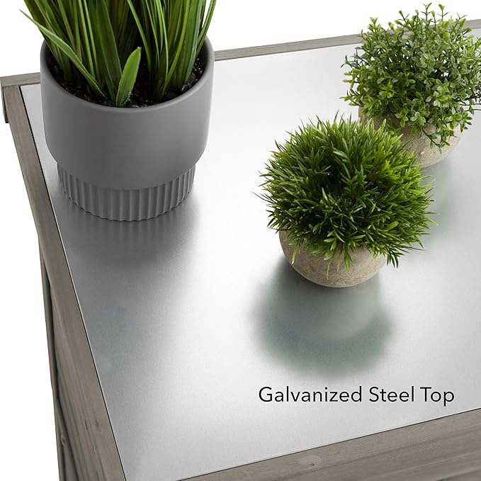 • Easy assembly and maintenance: Pre-drilled holes, included hardware and instruction manual, enable an easy set-up. The galvanized metal steel top requires a wipe down with a damp cloth to maintain cleanliness, ensuring the work surface remains sanitary and free from debris. With regular maintenance such as sealing or staining, the cabinet maintains both its structural integrity and aesthetic appeal over many years of use. Overall dimensions: 36.5” H x 17.75” D x 31.5” W.